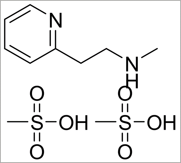 - 中文名称:甲磺酸倍他司汀;N-甲基-2-吡啶乙胺二甲磺酸盐;甲磺酸倍司他丁;倍他司汀甲磺盐;n-Methyl-2-Pyridineethanamindimethanesulfonate;2-[2-(Methylamino)Ethyl]PyridineMethanesulfonate;BetahistineMesilate;BetahistineMesylate;BetahistineMethanes