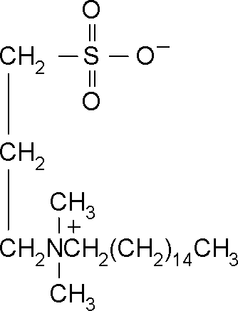 - 中文名称:3-磺丙基十六烷基二甲甜菜碱 ;3-磺丙基十六烷基二甲基铵, 十六烷基磺基甜菜碱