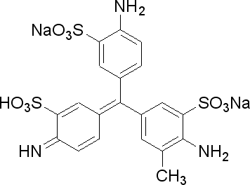 - 中文名称:酸性品红 ;复红, 2-氨基-5-[(4-氨基-3-磺苯基)(4-亚氨基-3-磺基-2,5-环己二烯-1-亚基)甲基]-3-甲基苯磺酸二钠盐,品红S,酸性紫19