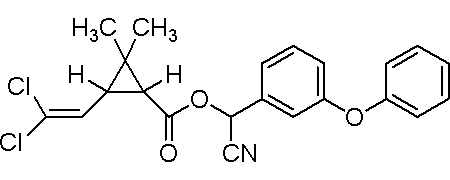 - 中文名称:氯氰菊酯 ;3-(2,2-二氯乙烯基)-2,2-二甲基环丙烷羧酸 alpha-氰基-3-苯氧基苄酯