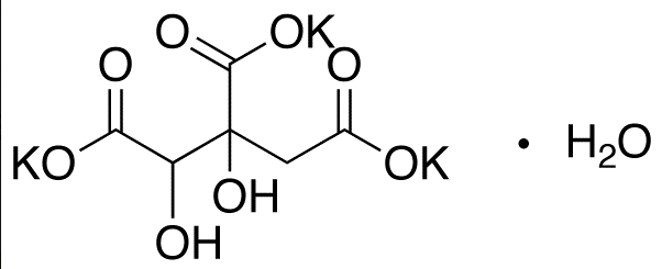 - 中文名称:2-羟基柠檬酸三钾; 1,2-二羟基-1,2,3-丙烷三甲酸; 羟基柠檬酸 三钾盐; 羟基柠檬酸钾三元一水合物