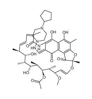 - 中文名称:利福喷丁; 环戊哌嗪利福霉素; 3-(4-环戊基-1-哌嗪基-亚氨甲基)-利福霉素;